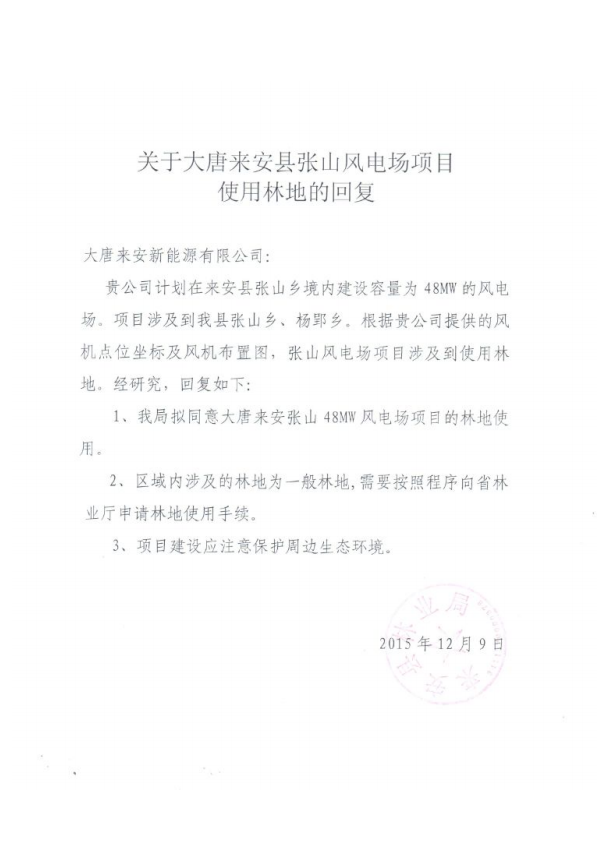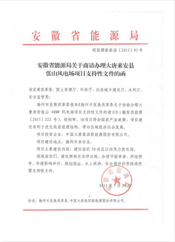 項目名稱:大唐來安張山48兆瓦風電項目